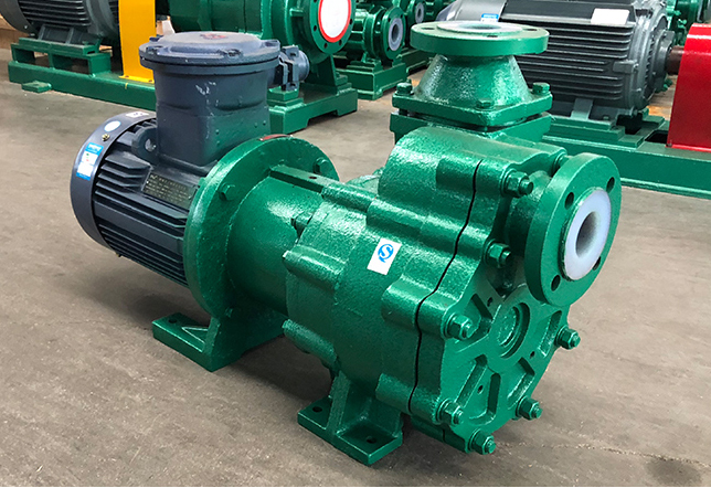 氟塑料磁力自吸泵又稱其為氟塑料自吸磁力泵、襯氟磁力自吸泵、耐腐蝕自吸化工泵,ZMD襯氟磁力自吸泵具有磁力泵和自吸泵的特性,同時兼具良好的自吸功能。按照國標設計研發可以輸送低位介質、罐車原料裝卸、氣液混合介質。過流部件緊襯氟塑料,泵體為金屬材料,能夠承受管道重量。取消軸封,利用磁力間耦合驅動,不會滴漏現象,保障工況安全生產。