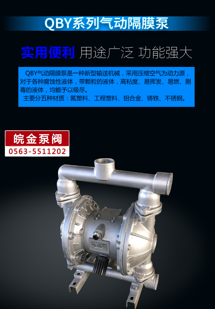 QBY氣動隔膜泵既能抽送流動的液體,又能輸送一些不易流動的介質,具有自吸泵、潛水泵、屏蔽泵、泥漿泵和雜質泵等輸送機械的許多優點。