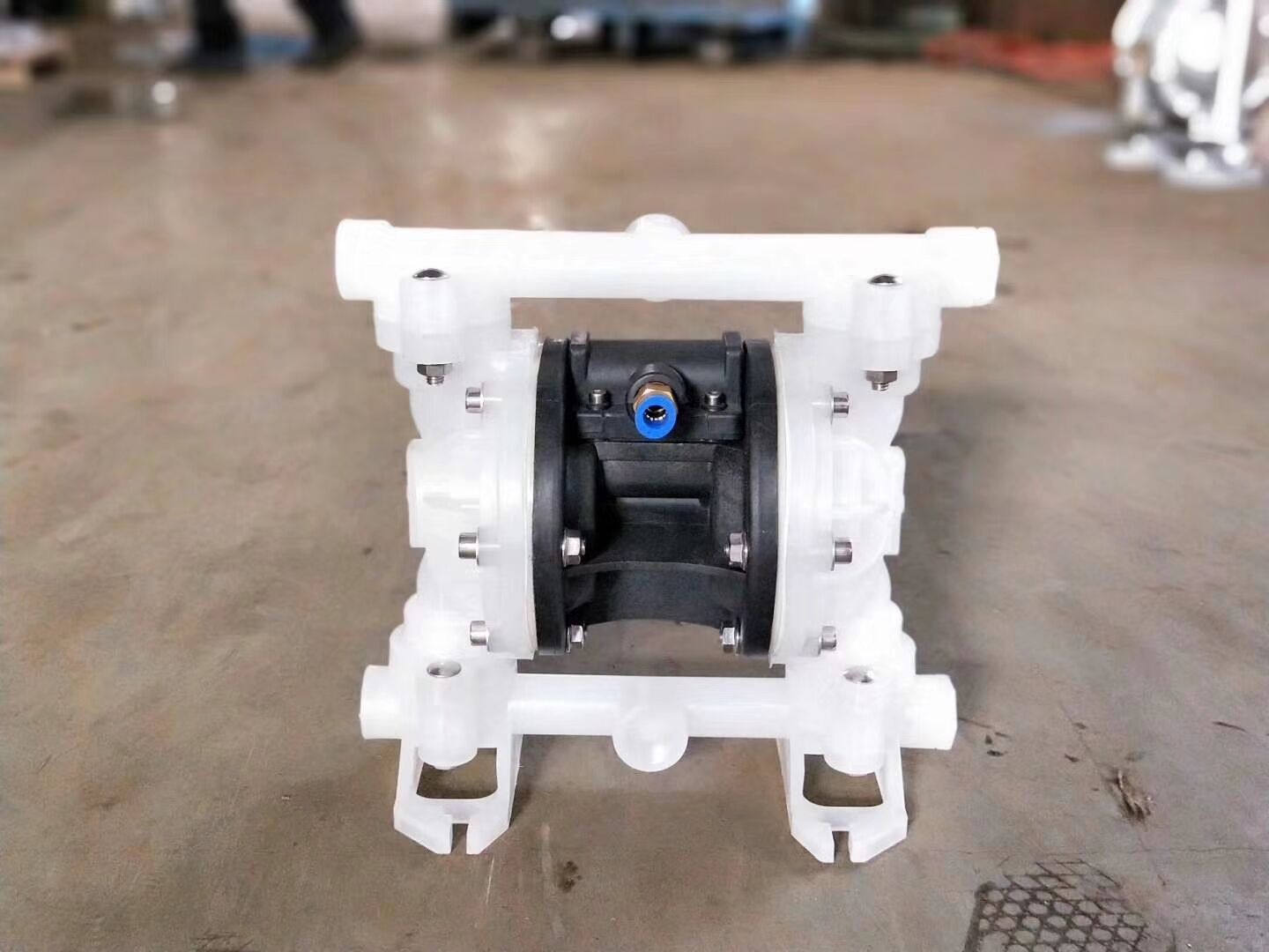 概述:隔膜泵是一種新型輸送機械,是目前國內新穎的一種泵類。采用空氣壓縮機壓縮空氣為動力源,對于各種腐蝕性液體,帶顆粒的液體,高粘度、易揮發、易燃、劇 毒的液體,均能予以吸盡