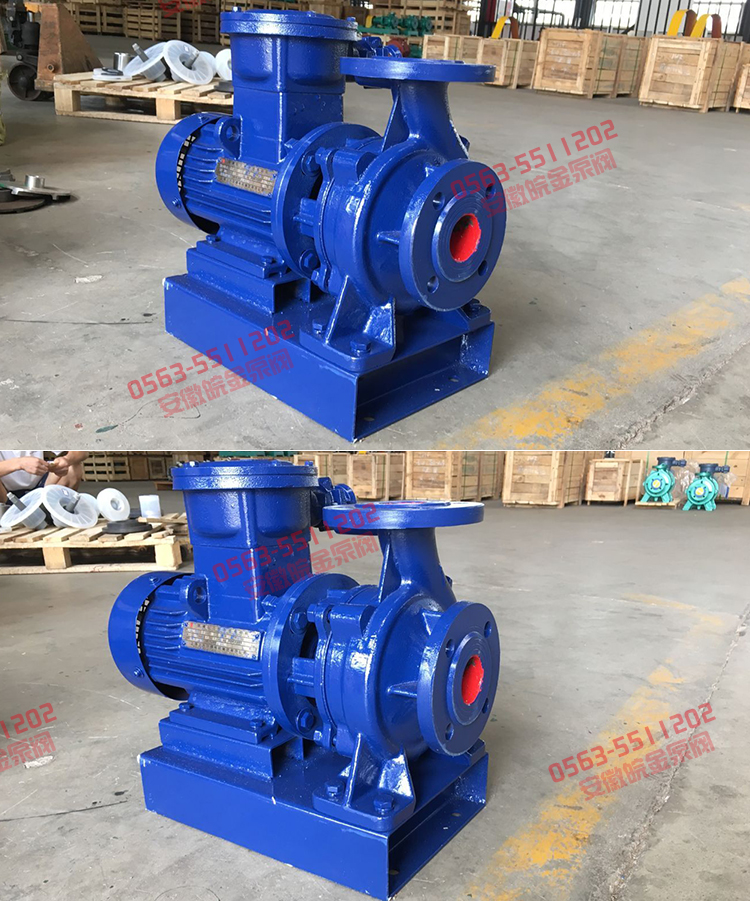4、ISWB防爆管道泵(鑄鐵材質),供輸送汽油、煤油、柴油等油類產品或易燃、易爆液體,被輸送介質溫度為-20~+120℃